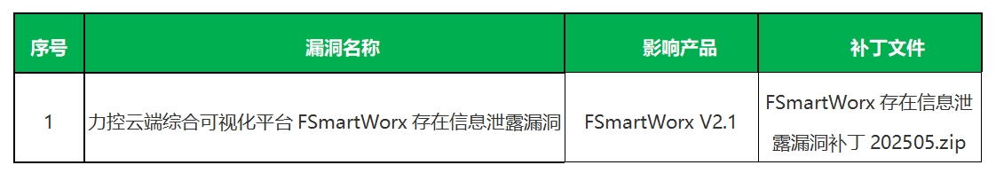 2025年5月28日,国家信息安全漏洞共享平台(CNVD)通报了我公司产品FSmartWorx的一个漏洞。现将该漏洞信息公布如下: