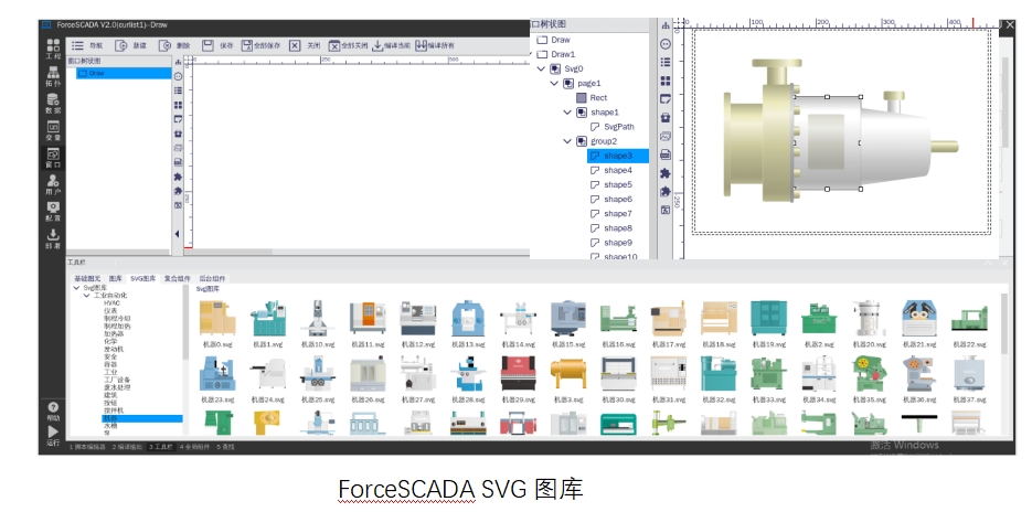 ForceSCADA软件的SVG图库采用XML的文本格式,支持使用脚本进行编辑,交互性强。
