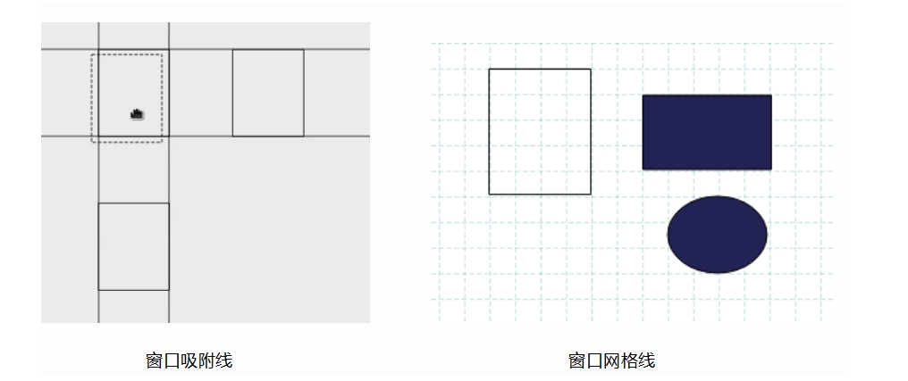 窗口吸附线功能让用户能够轻松实现元素对齐操作。当您拖拽一个元素时,系统会自动生成与其他组件对齐的参考线,引导您轻松实现各组件之间的四条边对齐,并在拖动完成后自动吸附。