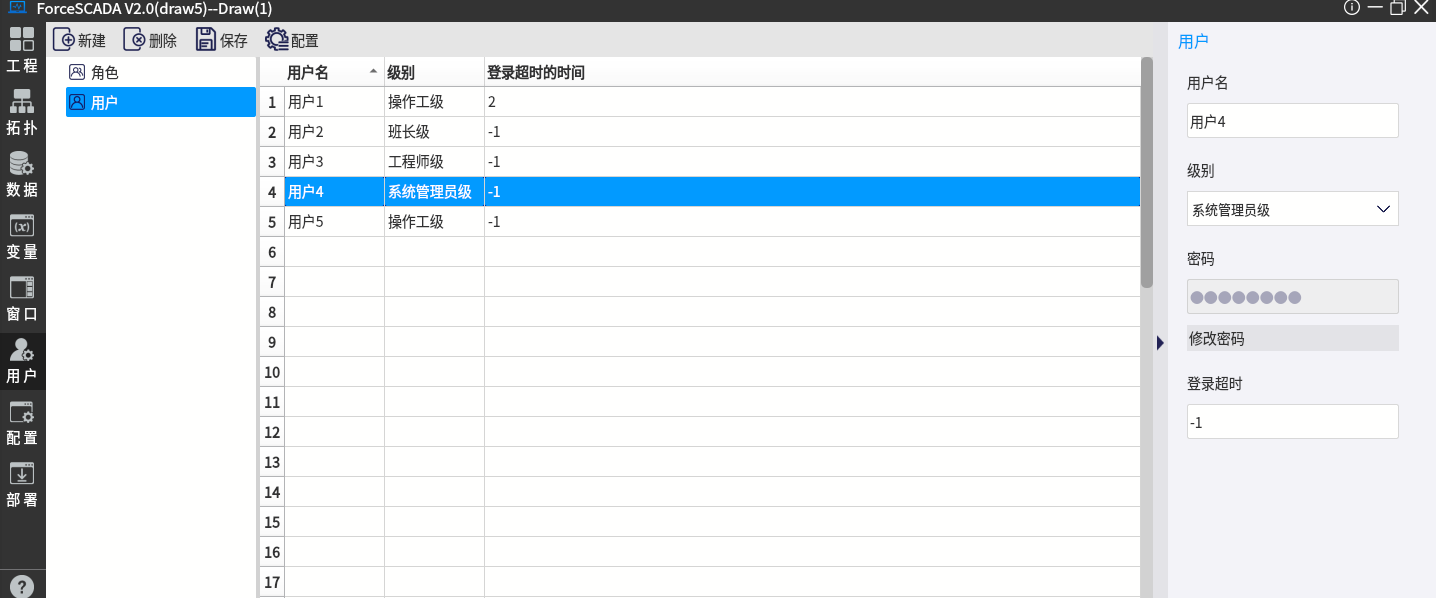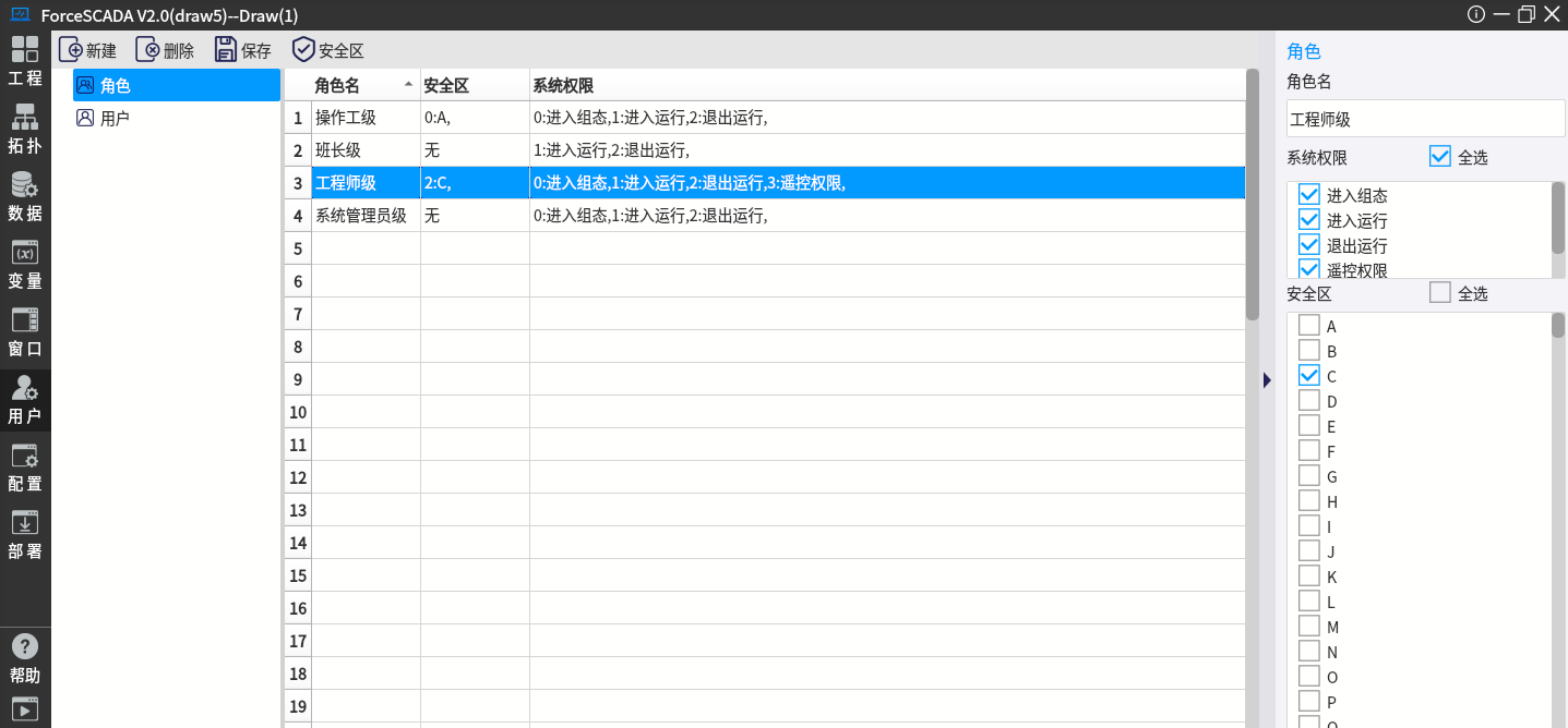 力控SCADA组态软件ForceSCADA产品用户、角色、安全区的设置和应用为现场客户提供了强大的安全管理工具,帮助解决权限控制、操作误用和系统安全性等实际问题,提升工作效率和系统的安全性。