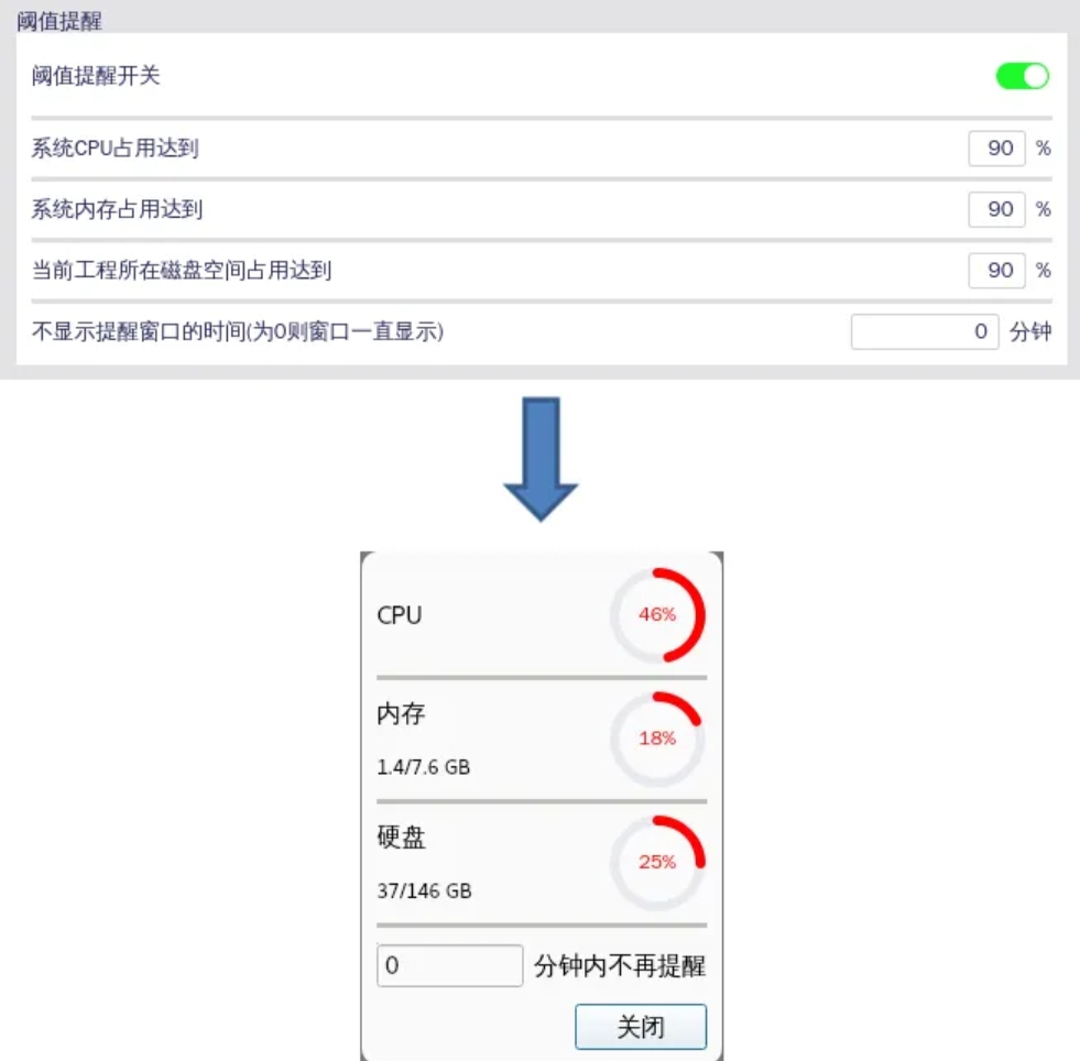 灵活配置阈值参数:精准贴合用户实际使用需求,可以灵活配置各项参数的阈值,包括CPU使用率、内存占用率、硬盘空间等。