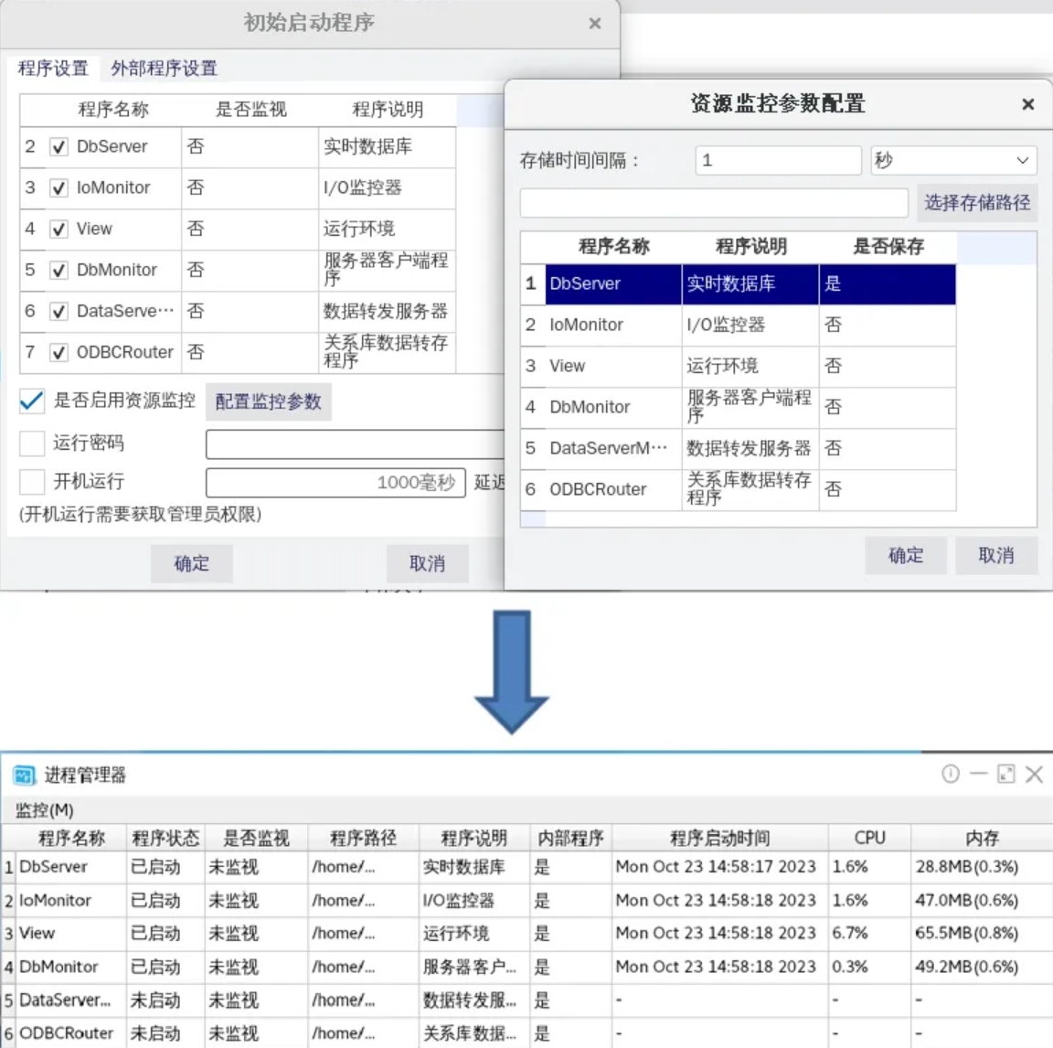 统一管理软件服务:统一管理软件所有服务,提供程序运行状态监测,同时对这些程序进行启动、停止和监视,资源监控可显示各项程序启停时间、运行状态、CPU、内存等信息,确保管理者对工业现场的资源状况了如指掌。