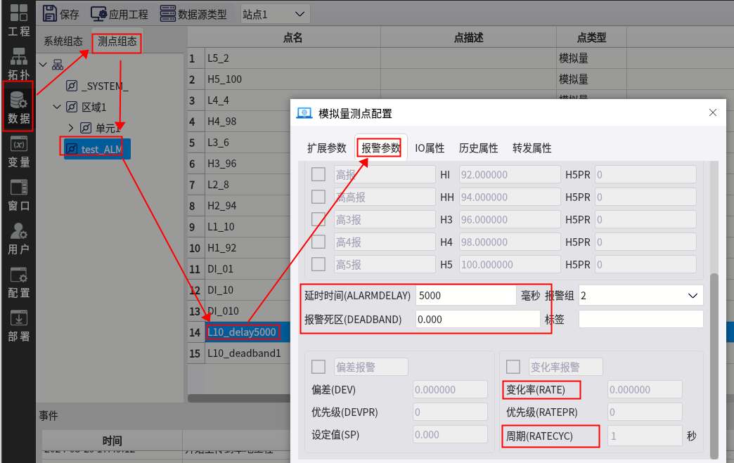 报警滋扰、误报情况,ForceSCADA在报警参数中设立,延时报警、死区报警以及变化率,做不同工艺报警触发动作约束限制,提高报警准确率和精确度。