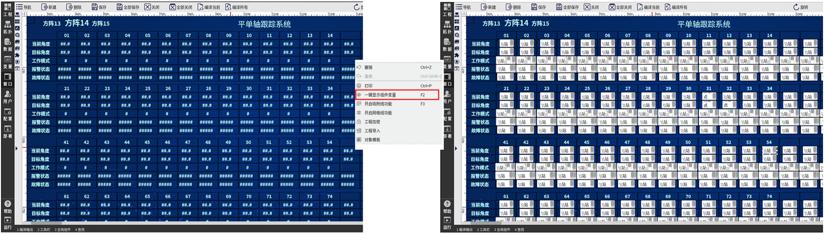 “一键显示组件变量”符合操作习惯,可以直观全面的展现元素的连接状态,高效完成变量交叉检查,提高工程人员的组态效率和工程准确率,进一步为项目整体质量增砖填瓦。