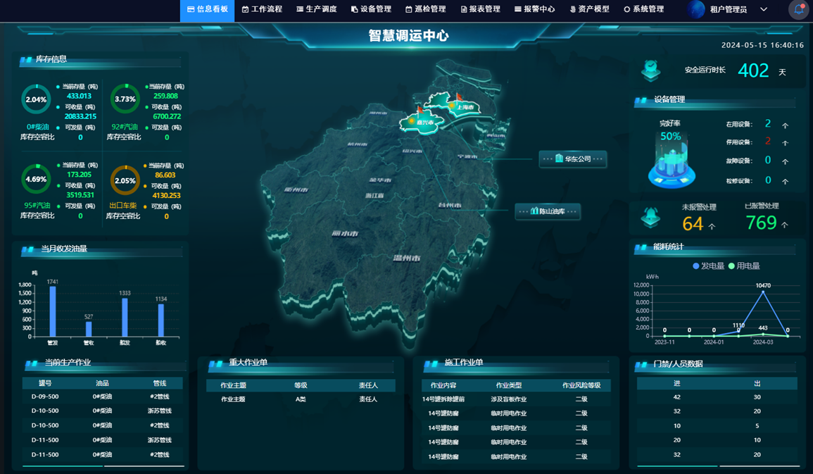 • 全量数据规范化管理与分析,实时掌握收发油任务进展,以及油库业务信息;