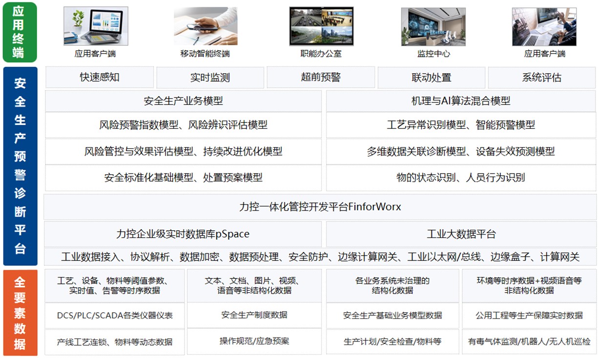 力控安全生产预警诊断平台广泛支持各类行业仪表、传感器、产线装置、外部环境数据等全要素数据的采集接入,基于企业级实时历史数据库pSpace及一体化管控平台FinforWorx构建,通过现场级验证确保算法在实际环境中的有效性和稳定性。随着企业数据的积累和算法的不断迭代,针对多个工业场景逐步进行AI算法优化,提升精度和实用性。