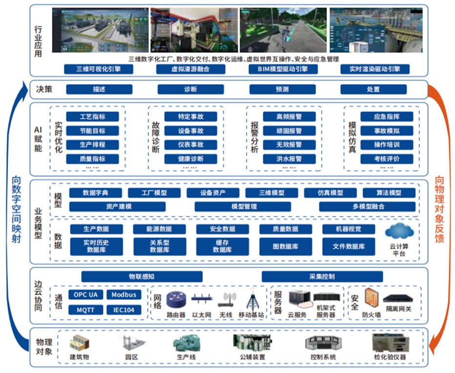 通过AI赋能实现在线优化、设备故障预测、诊断分析等,融合数字工厂、油气、燃气、水利、水务、供热、园区等行业应用,整体提升企业的管理水平。