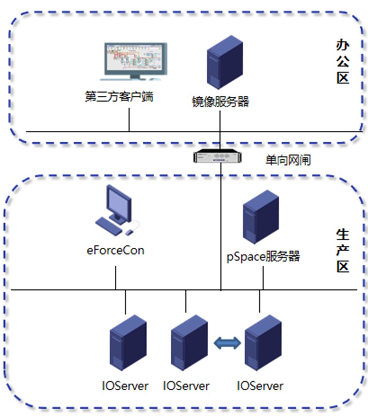 镜像部署:由于采集网络和办公网络信息敏感度不同,两个网络之间使用物理隔离,所以现场采集数据和管理数据是分离的,要把采集数据自动同步到办公系统中用于业务分析,传统的数据同步方式操作复杂,无法实时同步、穿透隔离网闸;使用镜像服务器,可以穿透隔离网闸,自动保证两个数据库的数据一致。