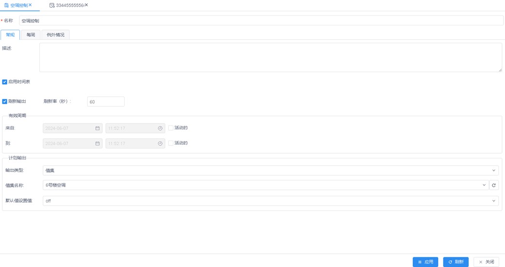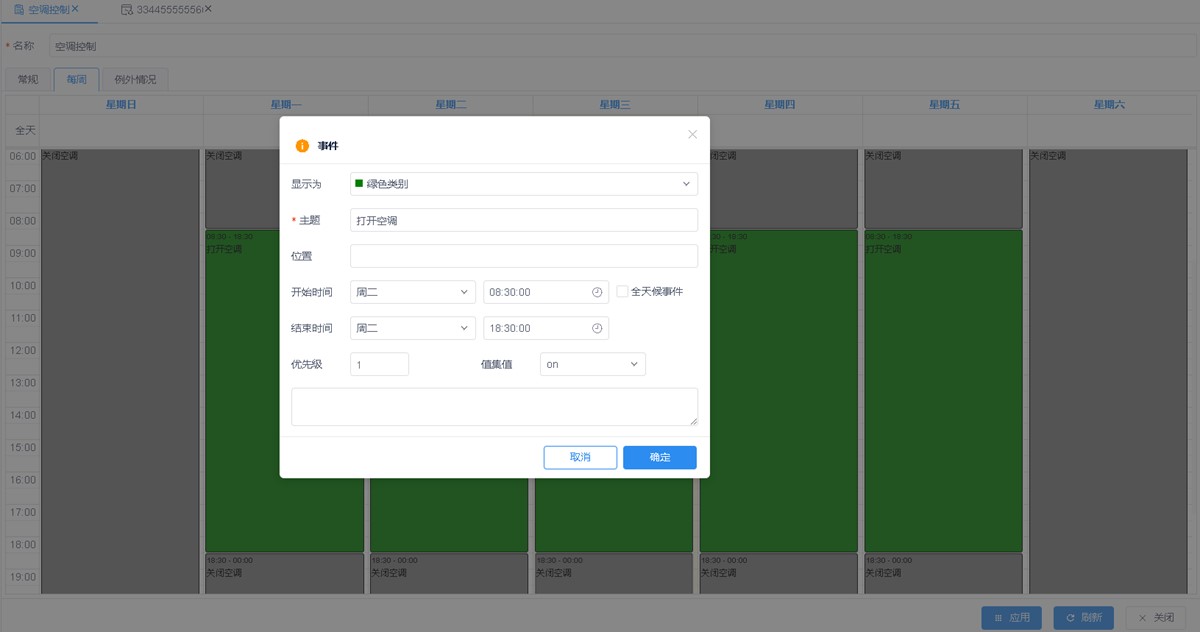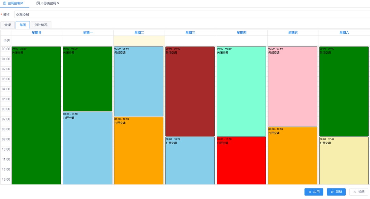 空调系统:结合楼宇内外环境参数(如温度、湿度、人员密度等),可通过时间调度表智能调整空调运行状态,确保室内环境舒适,同时降低能耗。