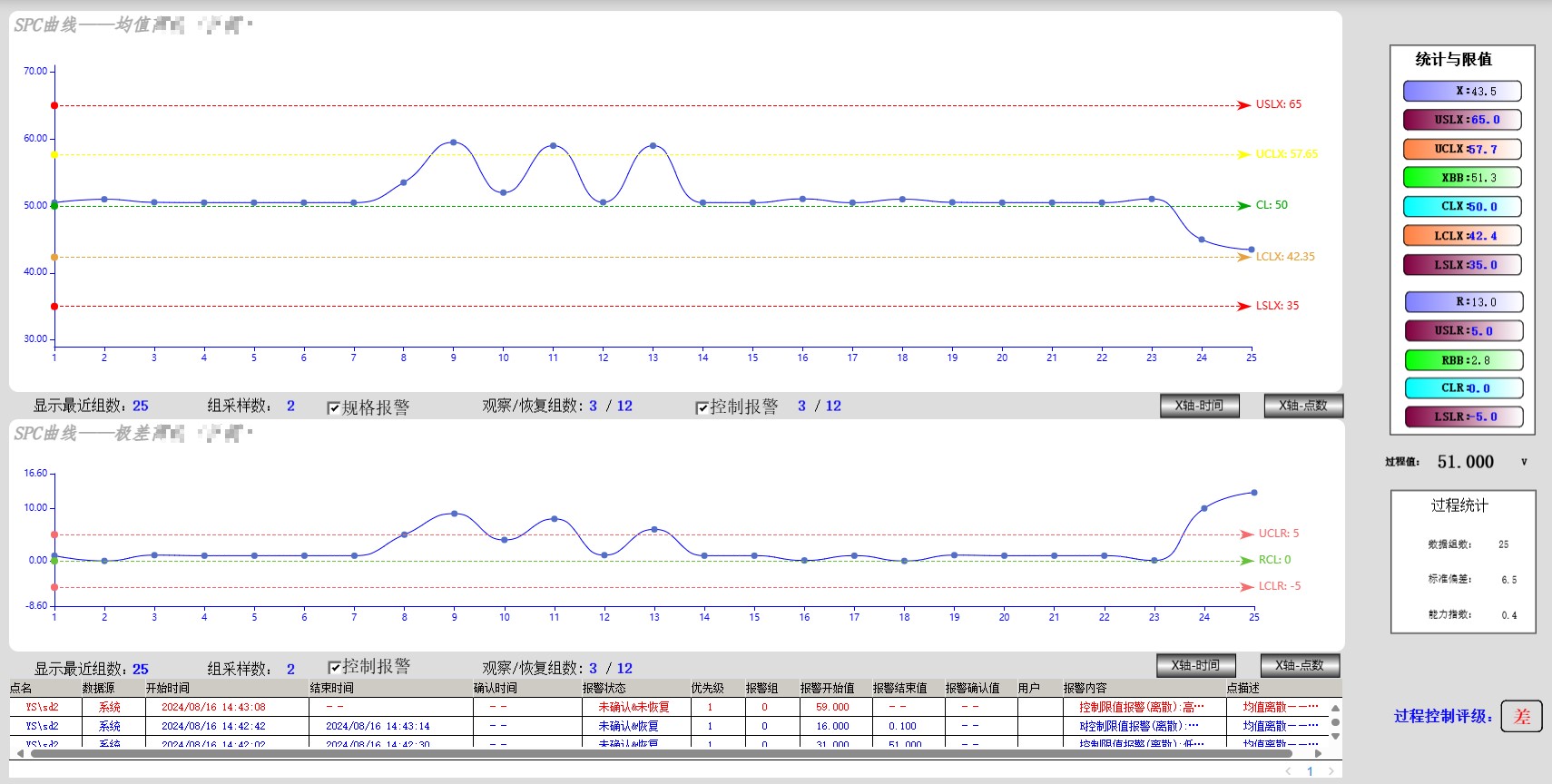 通过设定合理的控制界限和规格界限,对生产过程进行实时监控,强大的数据和图表处理能力可同时提供包括X-bar、R-bar统计图及Cpk等统计数据,通过在C端或B端观察控制图中点的波动,监测过程受控状态,确保产品质量和生产效率的稳定。
