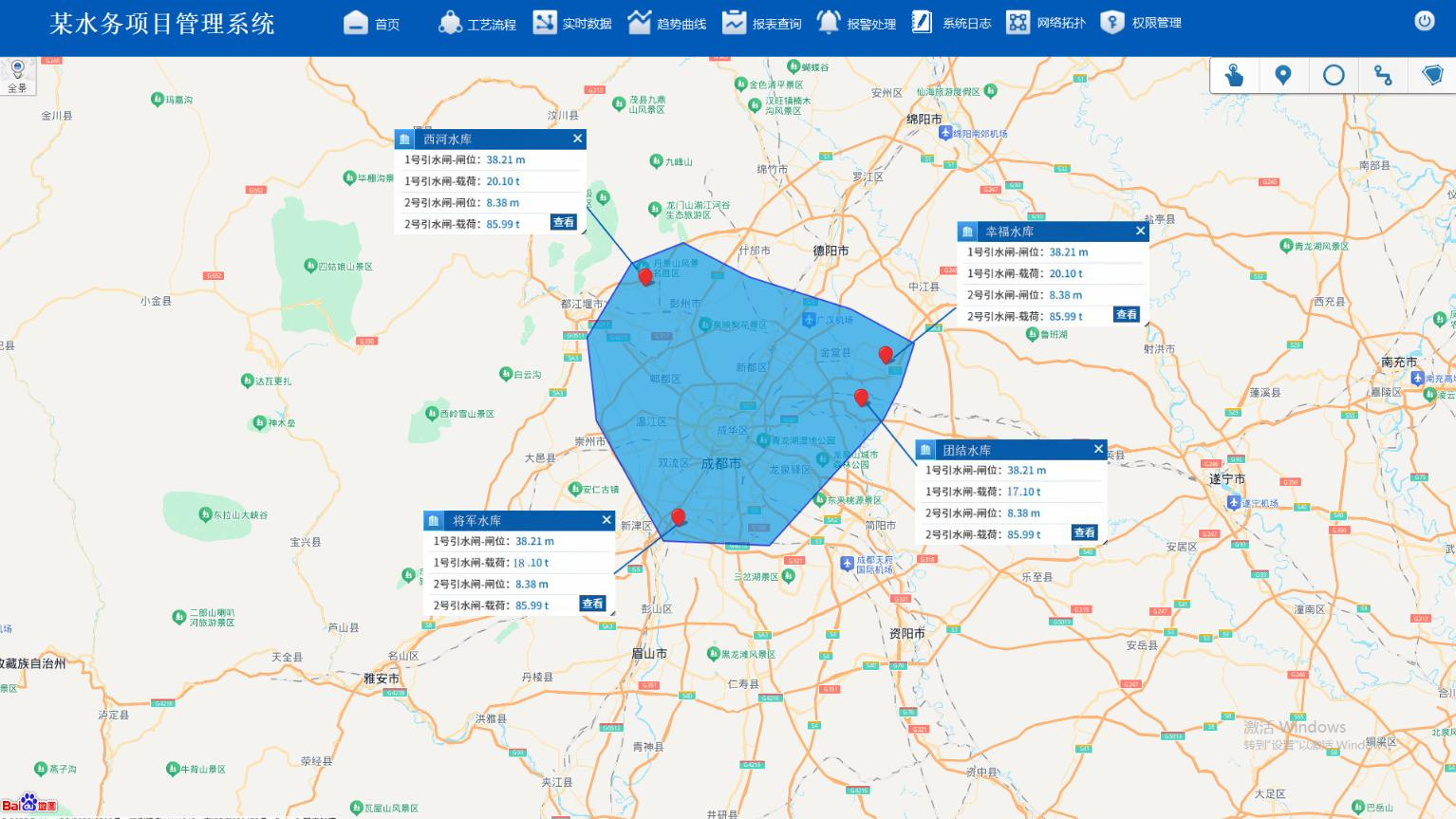支持地图的展示、平移、缩放、拖拽等功能。这些功能可以让用户从不同视角和缩放比例查看地图,以适应个性化的监控需求。
