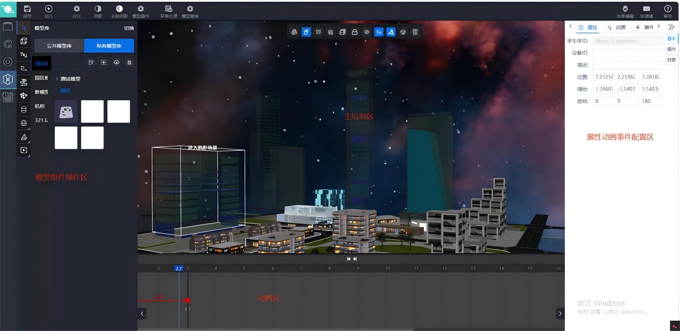 系统支持模型导入(如 gltf、glb、obj 等通用格式)与原生 3D 图元绘制两种建模方式,灵活适配不同项目需求。通过光源、相机、地面、天空盒等环境要素配置,结合动画逻辑与脚本控制,高度还原真实工业环境。支持多场景自由切换,助力用户高效构建覆盖全厂、车间、产线的智慧化三维场景。